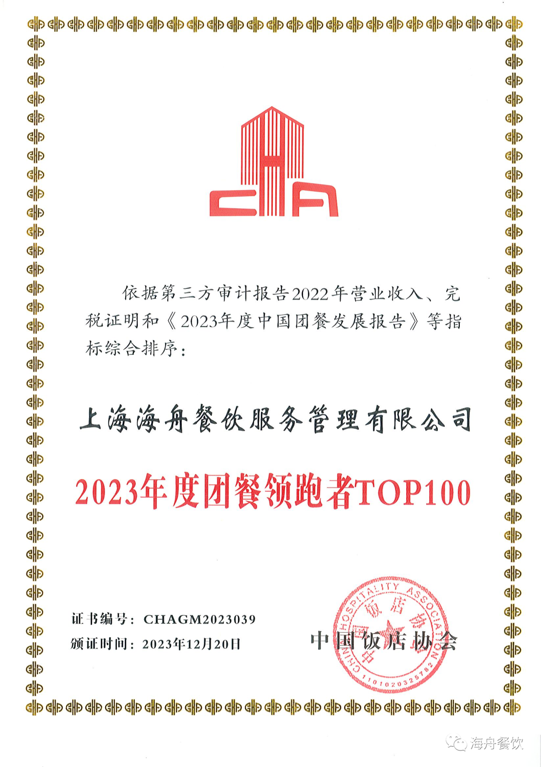 12月20日,我司獲評“2023年度團餐領(lǐng)跑者TOP100”。盤點成果,所有的努力都是值得,所有的夢想都能實現(xiàn),每一次突破都是堅持的結(jié)果,每一個成績都是前進的動力,再接再厲!