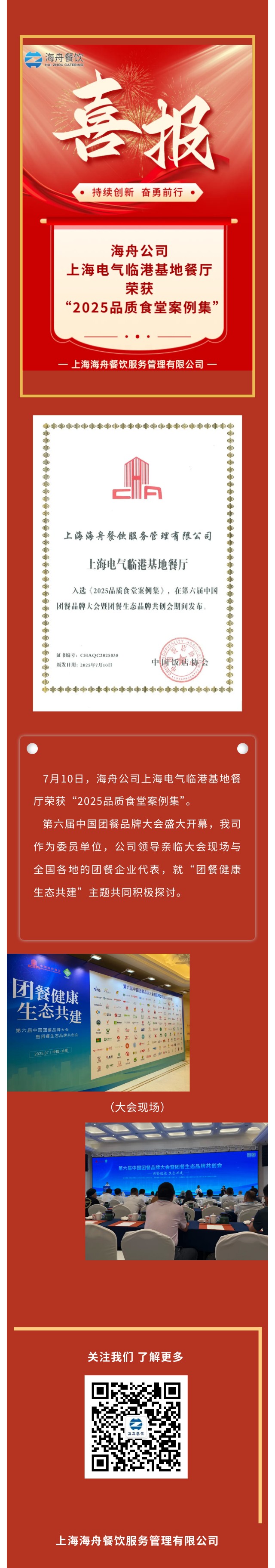 海舟公司上海電氣臨港基地餐廳入選“2025品質(zhì)食堂案例集”