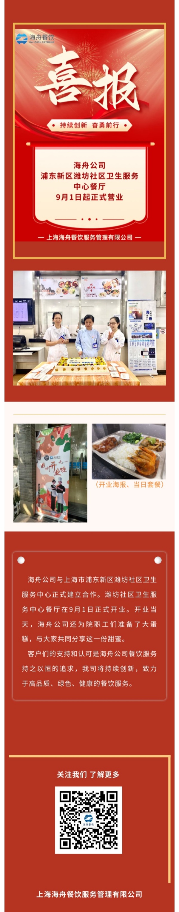 海舟公司上海浦東新區(qū)濰坊社區(qū)衛(wèi)生服務(wù)中心餐廳開業(yè)